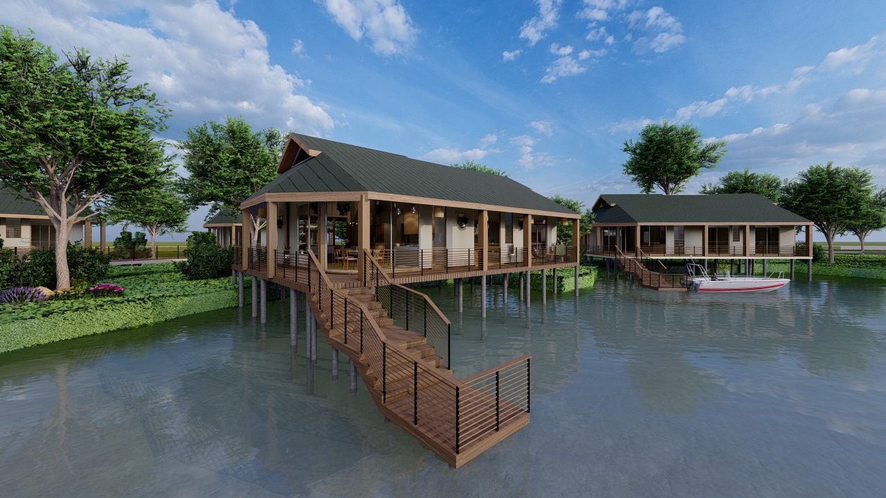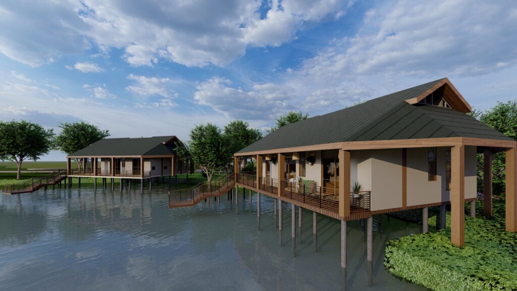 La zona más exclusiva del proyecto: Residencias elevadas frente a la laguna artificial y resorts de lujo diseñados con madera amazónica y vistas inigualables a Yarinacocha